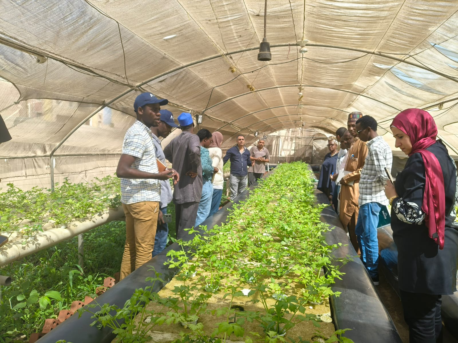 عقب العروض التقديمية، قام الوفد بجولة ميدانية داخل الصوب الزراعية التابعة للمشروع، حيث اطلع على أنظمة الأكوابونيك ونظم IMTA للاستزراع التكاملي، وكذلك وحدات التحكم الذكية في جودة المياه باستخدام تقنيات الذكاء الاصطناعي، ثم توجه لزيارة وحدة الطحالب برفقة الدكتور عمرو هلال.