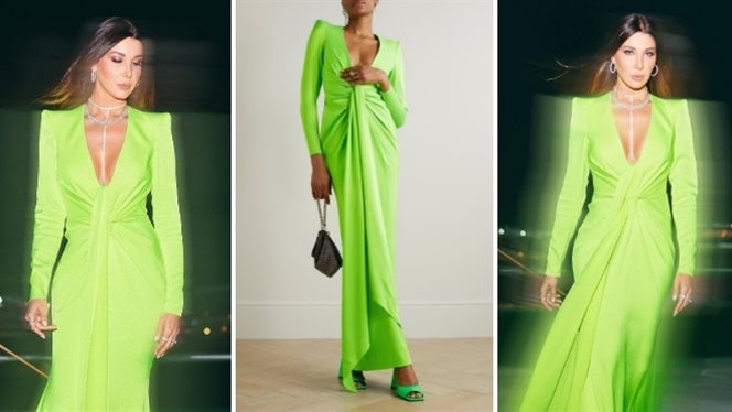 وتركت حنان مطاوع شعرها منسدلا على كتفيها بتسريحة انسيابية وناعمة مع ترك خصلات قصيرة على وجهها لتبرز من رقة ملامحها.