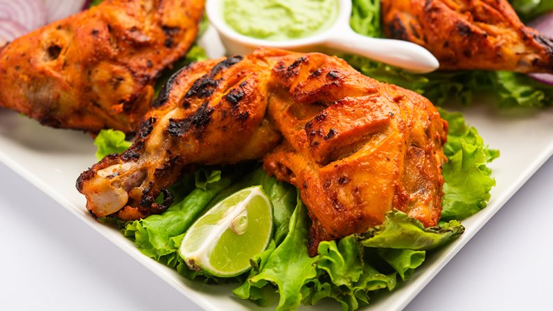 _ نخفق الزبادي، الزيت، الخل، الكاري، الكركم، الملح والفلفل.