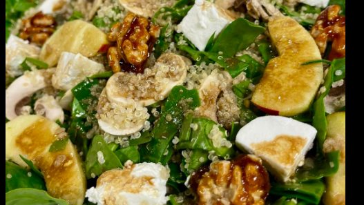 - تضاف السبانخ، الجزر، البطاطس المسلوقة، والجبن الفيتا مع التقليب.