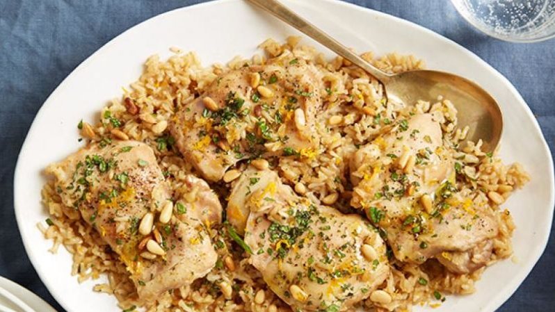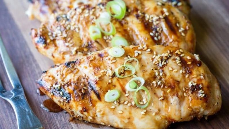 _ نسخن شواية أو مقلاة شوي. عندما تكون الشواية ساخنة، نضع الدجاج على الشواية ونطهيه لمدة 4 دقائق لكل جانب، أو حتى ينضج.