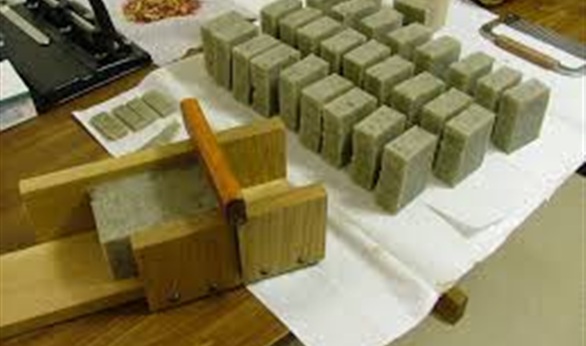 ونقوم بفرشة بكيس بلاستيك ثم نصب الصابون فى الدرج او الكرتونه ونتركه فى الهواءفى اليوم التانى نقطعه بالسكينه ويفرد و يترك لينشف.