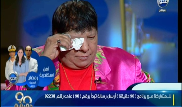 لم يستطع المطرب الشعبى شعبان عبد الرحيم أن يتمالك نفسه من البكاء على الهواء مباشر خلال لقائه مع الإعلامى أسامة منير فى برنامج " 90 دقيقة " الذى يذاع على قناة " المحور " عندما تم سؤاله عن زوجته التى فارقت الحياة .