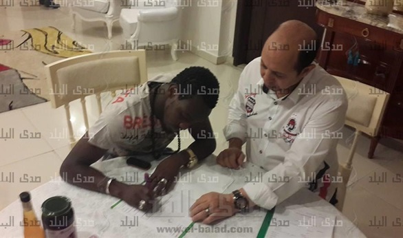 ونشر العميد أحمد سليمان عضو مجلس ادارة الزمالك ومهندس صفقاته الأخيرة صورا أثناء توقيع محمد كوفى للزمالك على عقود على صفحته الرسمية بموقع التواصل الاجتماعى فيس بوك.
