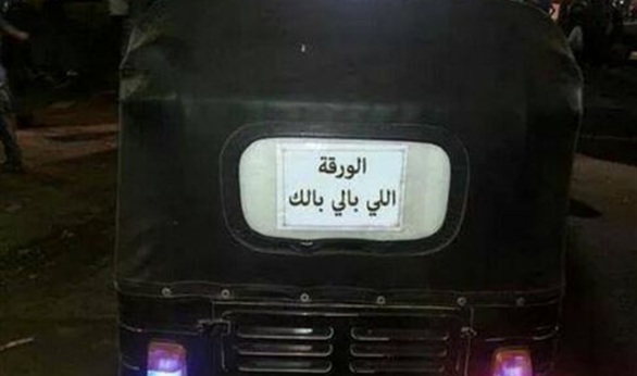 تداول المصريون على مواقع التواصل الاجتماعى "فيس بوك وتويتر" صورة لـ"توك توك" كتب عليه عبارة "الورقة اللى بالى بالك" كناية عن عبارة "هل صليت على النبى اليوم"