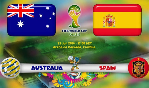 يترقب عشاق الساحرة المستديرة مباراة إسبانيا واستراليا فى الجولة الثالثة من المجموعة الثانية من مونديال البرازيل 2014 والتى تقام على ملعب ارينا دا بايشادا فى السابعة مساء اليوم الاثنين بتوقيت القاهرة .