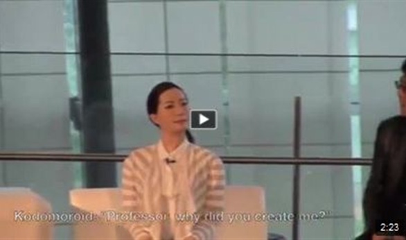 كما تبادل البروفيسور "هيروشي" أطراف الحديث مع أحد الروبوتات واسمها "كودومورويد".