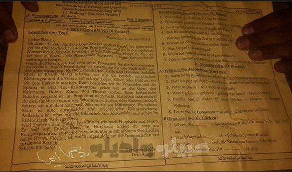 بالصورة.. "عبيلو و اديلو" تنشر ورقة امتحان اللغة الألمانية لطلاب الثانوية العامة