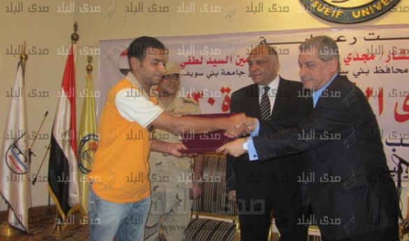 كرم الدكتور أمين لطفي رئيس جامعة بني سويف الزميل عمرو عبد الفتاح مصور موقع صدي البلد والذي أصيب أثناء تغطيته الصحفية.