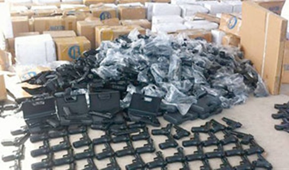 ضبطت دوريات حرس الحدود بمنطقة جازان جنوب السعودية ، 321 مسدسا و585 خزنة سلاح ومخدرات حاول مهربون تهريبها عبر حدود السعودية مع اليمن.