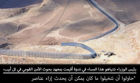 نشر أوفير جندلمان، المتحدث باسم رئيس الوزراء الإسرائيلي بنيامين نتنياهو، صورة للجدار الأمني المقام على الحدود بين مصر وإسرائيل، مؤكدًا أنه لولا هذا الجدار لانتشر الآلاف من مجاهدي سيناء داخل شوارع إسرائيل.
