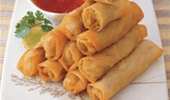 قدمي لأسرتك السبرينج رول بالخضروات على المائدة كأحد أنواع المقبلات .