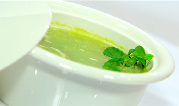 اتركيها حتى تغلي ثم اهرسيها بالميكسر وقدميها ساخنة وزينيها بورق النعناع
