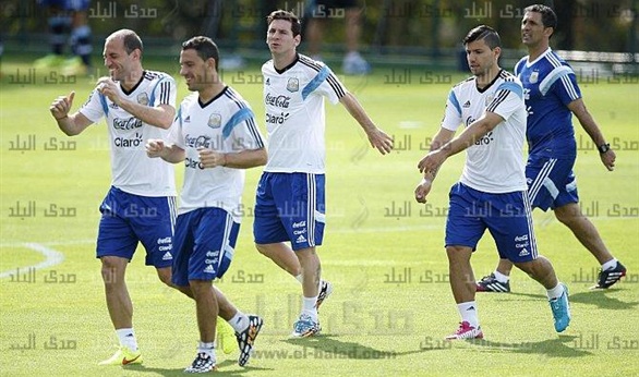 وشارك أجويرو نجم مانشستر سيتي الإنجليزي في تدريبات إحمائية تضمنت الركض حول الملعب وانضم لمباراة بين فريق من الصغار، الذين سافروا مع المنتخب الأرجنتيني للبرازيل، واللاعبين الاحتياطيين بمنتخب الأرجنتين، الذين لم يشاركوا في المباراة التي فاز فيها الفريق على سويسرا بهدف نظيف الثلاثاء.