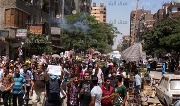 وكان أنصار المعزول تجمعوا أمام مسجد النور والرحمن بمنطقة المطرية استعدادا للانطلاق في مسيرة تجوب شوارع المنطقة فى ذكرى عزل مرسى.