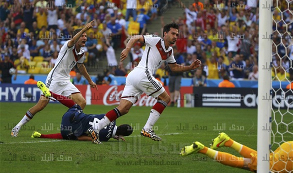 انتهى الشوط الأول بتقدم منتخب ألمانيا بهدف دون رد أحرزه هوملز فى مرمي منتخب فرنسا الملقب بالديوك الزرقاء فى المباراة المقامة حاليا ضمن منافسات دور ربع النهائي لمونديال البرازيل على ملعب ماراكاناريو دي جانيرو.