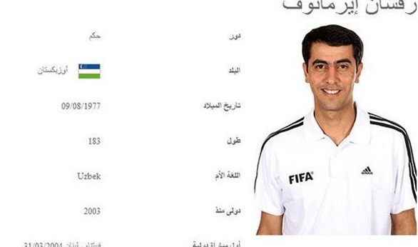 الأوزبكي إيرماتوف أكثر الحكام إدارة للمباريات في تاريخ بطولات كأس العالم