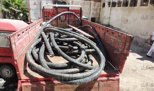وتم ضبط السيارة وبداخلها كمية من الكابلات الكهربائية السميكة وزنت حوالى 4 أطنان تقريباً، وتم ضبط الأدوات المستخدمة فى الجريمة .