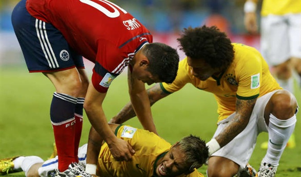 وأصيب نجم برشلونة الشاب بكسر في فقرات الظهر حين تغلبت البرازيل 2-1 على كولومبيا يوم الجمعة الماضي وسيبتعد لنهاية البطولة. وستلعب البرازيل مع المانيا في قبل النهائي يوم الثلاثاء.