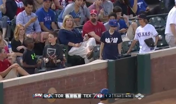 قام طفل امريكى صغير بالتقاط كرة من أحد لاعبي البيسبول اللعبة التي تحظى بشعبية كبيرة في أمريكا خلال احدى المباريات الرسمية وقدمها هدية لفتاة حسناء شقراء جالسة وراءه فى المدرجات.