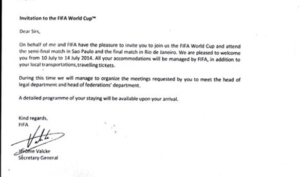 وجه الدعوة جيروم فالكه سكرتير عام الاتحاد الدولى لكرة القدم "فيفا".