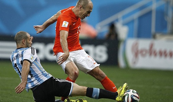 أعرب آريين روبين لاعب المنتخب الهولندي، إنه يتمنى أن يتوج المنتخب الألماني بكأس العالم لكرة القدم التي تستضيفها البرازيل وتجمع المباراة النهائية بين التانجو والمانشافت يوم الأحد المقبل.
