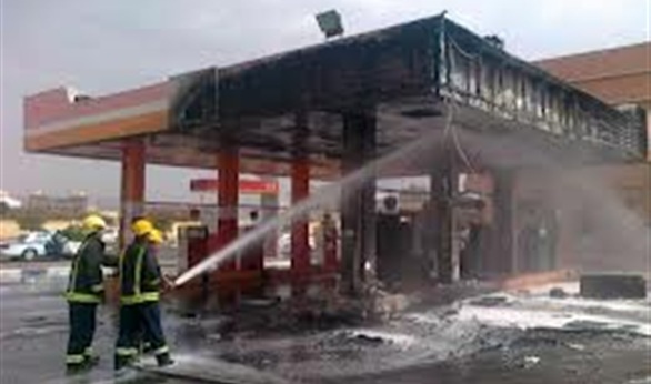 حريق بمحطة وقود بدراو بسبب ماس كهربائي