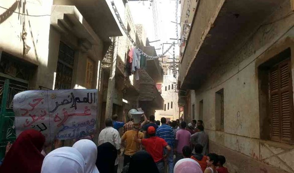 انطلقت المسيرة من مسجد ابراهيم عاشور بمنطقة الوليدية رافعين شارات رابعة العدوية وحاملين ﻻفتات تندد بالعدوان الصهيوني على غزة جابت المسيرة شوارع منطقة الوليدية