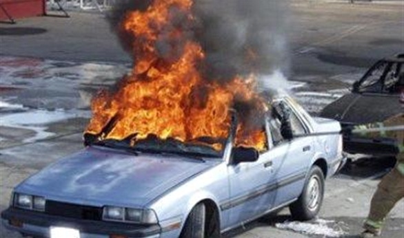 مجهولون يضرمون النيران بقنابل المولوتوف في سيارة وكيل نيابة أمام منزله بالمحلة