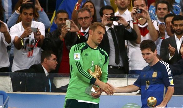 أبدى دييجو مارادونا، أسطورة كرة القدم الأرجنتينية والعالمية، عن تعاطفه مع الهزيمة التي مُني بها مواطنه ليونيل ميسي في نهائي كأس العالم في البرازيل، إلا أنه اعتبر منحه جائزة أفضل لاعب في البطولة ظلما.