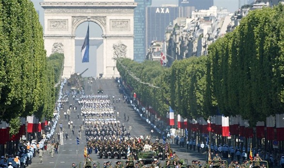 تحتفل فرنسا اليوم الاثنين،بعيدها الوطني، وبالذكرى المئوية للحرب العالمية الأولى، من خلال استعراض عسكري يجوب جادة الشانزليزيه بباريس.