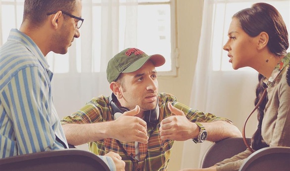 نشر المخرج السينمائى عمرو سلامة صورة له بصحبة الفنانة ياسمين رئيس والفنان أحمد حلمى فى كواليس فيلم "صنع فى مصر".