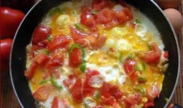 يضاف البيض إلى الطماطم .