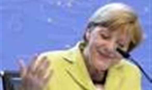 وهنأ صحفي من شبكة "زد دى أف" الألمانية ميركل بطريقته حيث غنى لها أغنية عيد ميلاد سعيد خلال مؤتمر صحفي قبل القمة .