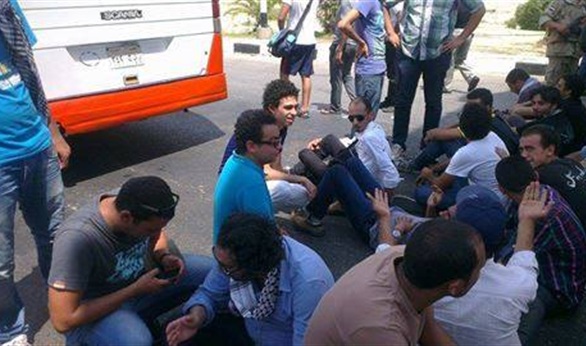 افترش المشاركون في القافلة المتجهة إلى غزة لإرسال مساعدات للفلسطينين الأرض أمام كمين" بالوظة" بسيناء بسبب رفض قوات الجيش مرور القافلة، كما هددوا بالاعتصام حتى يتم فتح الطريق أمامهم.