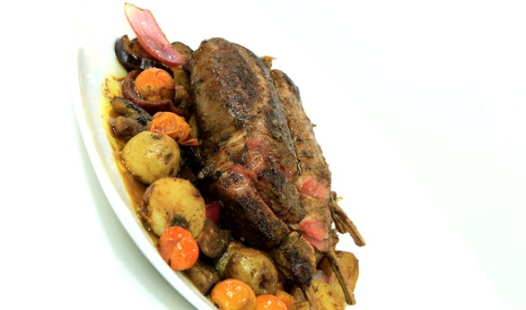 6- ترفع و تقطع شرائح و تقدم مع الخضروات بالهنا