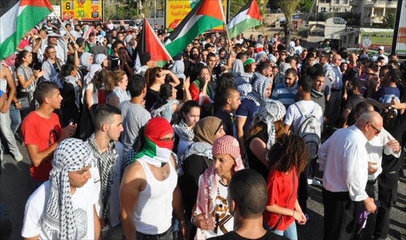 وقال مصور لرويترز، إن المحتجين كانوا يلوحون بالأعلام الفلسطينية ويرددون "كلنا فلسطينيون" ويحملون لافتات كتب عليها "الصهاينة..ارهابيون" وتم احراق علم إسرائيلي واحد على الأقل.
