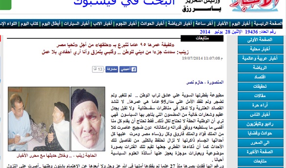 استقبل الرئيس / عبد الفتاح السيسى، صباح اليوم بمقر رئاسة الجمهورية بمصر الجديدة، السيدة/ زينب مصطفى سعد الملاح، وذلك بعد أن نشرت صحيفة الأخبار قصتها حيث تبرعت بقرطها الذهبي لصالح صندوق "تحيا مصر" على الرغم من كونها سيدة مسنة تعاني ظروفا معيشية صعبة، فضلا عن موارد رزقها المحدودة وفقدانها للبصر.