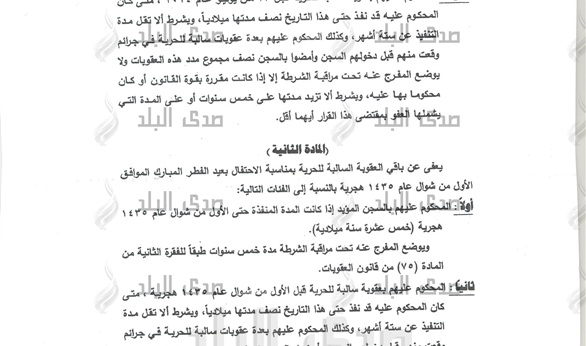 ويتضمن القرار تشكيل لجنة عليا من الجهات الأمنية المعنية برئاسة مساعد وزير الداخلية لقطاع مصلحة السجون للنظر فيمن يستحق العفو وفقاً لأحكام هذا القرار.