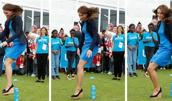 والتقطت صورا للأميرة كيت وهى تحاول القفز فى لعبة "الثلاث علب" خلال زيارتها إلى جلاسكو.