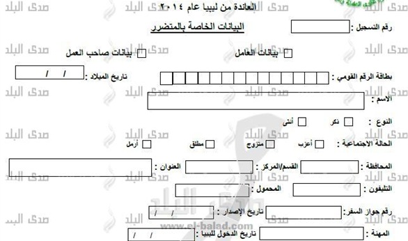 وأكدت أنه على المتضرر أن يرفق مع الاستمارة صورة من جواز أو وثيقة السفر، موضحا بها تاريخ المغادرة وصورة من المستندات الدالة على خسائره ، وترسل جميعها بالبريد المسجل علي عنوان وزارة القوي العاملة والهجرة ( 3 شارع يوسف عباس - مدينة نصر - القاهرة )، ويكتب علي المظروف من الخارج "العائدون من ليبيا عام 2014".، مشيرة إلي في حالة المتضررين قبل الأحداث الأخيرة ، يراعى تقديم صورة من تأشيرة الخروج والعودة .