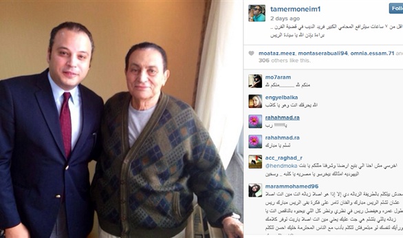 وكانت آراء النشطاء قد تباينت عقب نشر تامر عبد المنعم صورة تجمعه بالرئيس الأسبق محمد حسني مبارك ومعلقًا عليها عبر صفحته بموقع التواصل الاجتماعي "فيس بوك" بانه يتمنى حصول مبارك على البراءة.