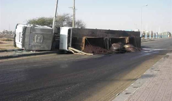 توقف الطريق الصحراوى الشرقى بالمنيا لانقلاب سيارة محملة بـ23 طن غاز طبيعي ووفاة قائدها