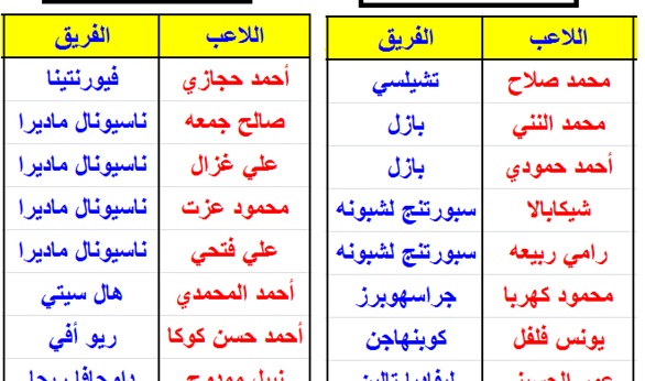 1- أحمد حجازي (فيورنتينا الإيطالي).