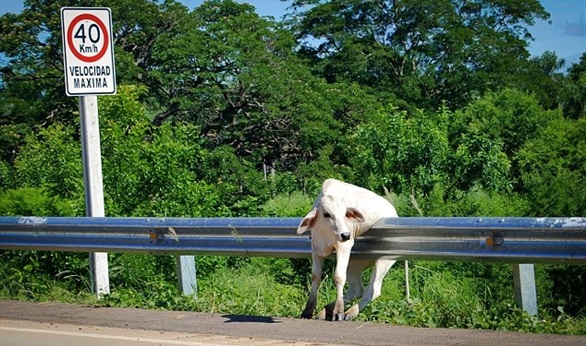 أدى خروج بقرة عن قطيعها إلى وضعها في موقف لا تحسد عليه حيث توجهت إلى سور بجانب أحد الطرقات السريعة في بوليفيا مما تسبب في حدوث مخاطر كادت أن تكلفها حياتها.