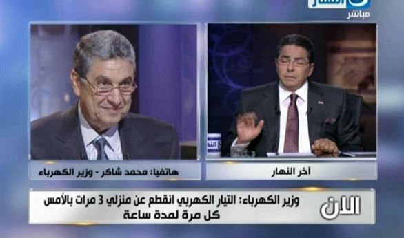 قال وزير الكهرباء الدكتور محمد شاكر، إن عجز الكهرباء تجاوز 1040 ميجا وات بسبب ارتفاع درجات الحرارة وتدمير أبراج الضغط العالي من ناحية أخرى، "وهذا ما نحاول تفاديه وإدخال قدرات جديدة بجانب صيانة للمحطات القديمة".