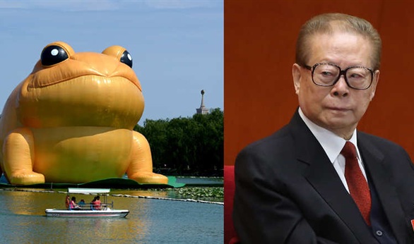 ولكن لقب "الضفدع" صاحب الرئيس السابق الذي حكم لعشر سنوات على وسائل التواصل الاجتماعي الصينية حتى قبل ظهور الشبيه المطاطي العملاق، ليصبح رمزاً متفهماً عليه بين الناس، إلا أن ظهور الضفدع المطاطي ساعد في اتساع استخدامهم للكلمة.