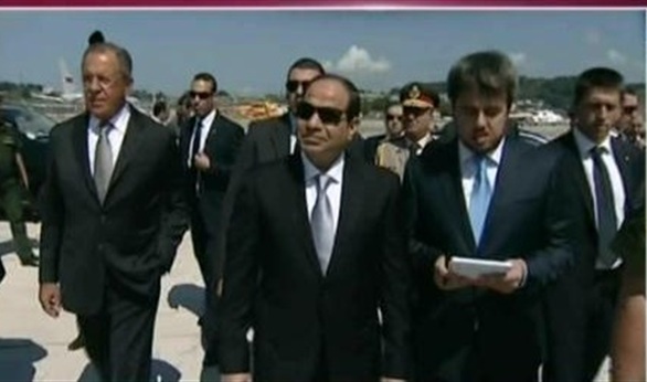 وقد دخلت الطائرة الرئاسية المجال الجوى الروسى يرافقها سرب من المقاتلات الروسية، مصطحبة إياها حتى هبوطها في مطار مدينة "سوتشي"، حيث كان سيرجى لافروف، وزير خارجية روسيا الاتحادية في استقباله.