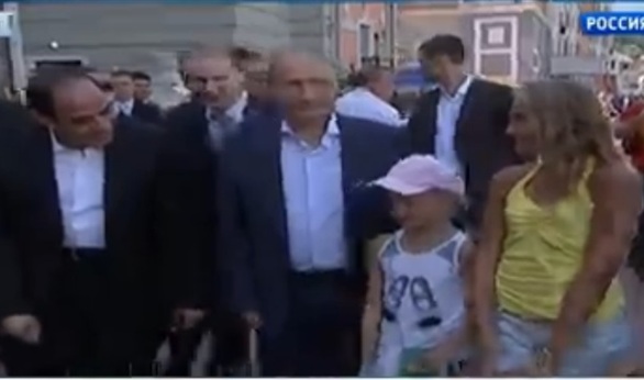 استقبل مواطنو سوتشي بروسيا الرئيس عبد الفتاح السيسي بالترحاب والتقطوا معه الصور التذكارية هو والرئيس بوتين.