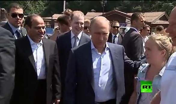 جاء ذلك أثناء زيارة الرئيس السيسي، اليوم، لروسيا، في أول زيارة رسمية له بعد توليه رئاسة الجمهورية، وقد بدأت الزيارة بتفقد الرئيس السيسي، المعدات القتالية والعسكرية بمطار "سوتشي"، ثم انتقل للقاء الرئيس الروسي في مجمع "لاورا"؛ للتزلج على الجليد والبياثلون.